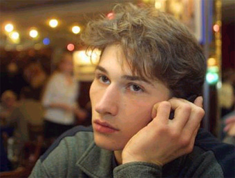 Actor Mark Podlesny, a surviver hostage, seen during an interview in a Moscow cafe, Monday, Oct. 28, 2002. Podlesny, 22, was on stage in his role as one of a group of tap-dancing pilots at the start of the second act Wednesday night. Just as Podlesny was about to pronounce his line, a masked gunman in camouflage jumped on stage. [AP]