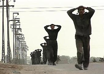 Long columns of Marines and their equipment advanced along the main road from Kuwaiti border to An Nasiriyah, where units were crossing the Euphrates. Part of the 3rd Infantry Division had reached the area of the Shiite holy city of Najaf after a 230-mile, 40-hour sprint through the desert, killing 100 machinegun-toting militiamen along the way. When more than 30 Iraqi armored vehicles were spotted heading toward the 2nd Brigade's positions, air support was called in; A-10s and B-52s hammered the Iraqis, and the Army didn't have to fire a shot. Through the night, explosions and the red streaks of missiles flashed in the sky over the Najaf area's farmlands. Small groups of Iraqi fighters approached US positions in pickup trucks or on foot before dawn Monday, but were driven back by tank and artillery fire. When Iraqis fired rockets from Najaf at the Americans, the US troops responded with heavy fire into the city. In the first such strike of the war, a pilotless Predator drone fired a Hellfire missile Friday at an Iraqi anti-aircraft gun outside the city of Amarah, on the Tigris River north of Basra, said Lt. Col. Brian Pierson, chief of reconnaissance operations. Navy warships deployed in the eastern Mediterranean fired dozens of Tomahawk cruise missiles at targets in Iraq on Sunday for the first time since the war's start. In the early hours Sunday, Iraq fired a missile into northern Kuwait, but it was destroyed by a Patriot missile, Kuwaiti military spokesman Youssef al-Mullah said. In the north, airstrikes were reported against strongholds of Ansar al-Islam, a militant Islamic group with alleged ties to al-Qaida and Baghdad. Bursts of anti-aircraft fire were heard from the direction of Mosul, and Iraqi television reported that Saddam's hometown, Tikrit, had been bombed several times. In western Iraq, Abizaid said, the forces went after Iraqi logistical targets, command and control facilities and commando units. Authorities said the number of Iraqi prisoners in allied custody was about 2,000. About 200 were being held at the Tillil Air Base, a dilapidated complex near An Nasiriyah that has been idle since 1991. Sgt. 1st Class William Jordan of St. Mary's Court, Md., guarded three rectangular prisoner pens surrounded by concertina wire. The prisoners sat impassively as identification tags were pinned on them. Most wore green Iraqi military uniforms, but some were also dressed in civilian clothing, including jogging suits and traditional Arab robes and headdress. They were given MREs and water; ultimately, they were expected to be moved toward Kuwait for "processing," interrogation by military intelligence officials. The war continued to be a strange mix. There was tough resistance in some spots, such as the southern Iraq city of Umm Qasr, where sporadic fighting continued days after the allies took effective control. But there was none at all in others. As soldiers from the 101st Airborne division moved through the Iraqi desert, villagers lined up along the highway to greet the troops with two pressing questions: Are you friendly? And is food coming? Through an interpreter, Col. Michael Linnington assured village leaders that US forces were indeed friendly and that U.N. relief workers would bring food. "We are here to help return the country to the way it used to be. we are here to help the Iraqi people. That's it. And to take out Saddam's government," Linnington said. Villagers peered with curiosity at the soldiers - many waved and smiled. One young boy saluted to the troops; another said "welcome" in English. Their leaders nodded enthusiastically when they heard that food would arrive soon.