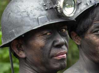 A tired rescue worker takes a rest after coming out from a mine entrance where a gas blast killed at least three miners in Jinji Coal Mine in Hunan Province, July 5, 2003. Four other miners are still trapped in the mine till press time. [newsphoto.com.cn]