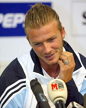 | | Real Madrid midfielder David Beckham speaks at a press conference held in Kunming, Southwest China's Yunnang Province, July 30, 2003. Beckham said his Real Madrid transfer from Man Unite was not for money but the football and career challenges. Real Madrid is on a two-week Asian tour in cluding China, Japan, and Thailand. [sport.tom.com] |