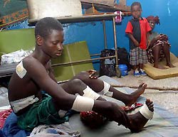 Fighting has surged around three key bridges in the divided coastal capital for nearly two weeks, leaving front lines little changed as the death toll climbs. Scores of civilians have been felled by stray bullets and mortar bombs randomly fired by ill-trained fighters, including drugged-up children. West African leaders are to meet for an emergency summit in Ghana Thursday to discuss the force. Taylor, under pressure from President Bush, has promised to step down once peacekeepers arrive. The former warlord is accused of fanning more than a decade of regional crisis and is wanted for war crimes in Sierra Leone. Taylor's fighters hold only a strip of land stretching back from Monrovia,