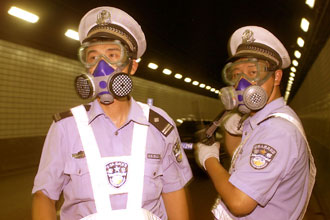 flow in a Shanghai tunnel, August 5, 2003. The tunnel traffic has far