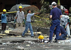 The perpetrators in both attacks used the same kind of explosives and tried to scrape off the identification numbers on the vehicles used. Police also said the Marriott bombers used a mobile phone to set it off — the same method used on Bali.