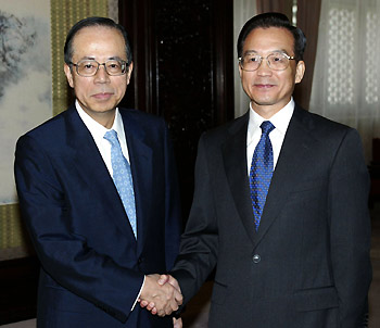 The premier made the remark during a meeting with visiting Japanese Chief Cabinet Secretary Yasuo Fukuda and his entourage. Yasuo Fukuda came to Beijing to attend activities marking the 25th anniversary of the Sino-Japanese treaty of peace and friendship. Speaking highly of the contribution made by late Japanese Prime Minister Takeo Fukuda to the signing of the treaty and to the bilateral relations, Wen said China and Japan should carry forward the belief and foresight of the older generation of statesmen from both countries and always adhere to the principles and spirit of the treaty so as to promote the Sino-Japanese relations in the new century. Wen said that it is in the fundamental interests of both sides to promote political trust, economic cooperation and friendship between the peoples of China and Japan, two neighboring countries separated by a strip of water. The two sides should draw lessons from history and gear to the future, view the bilateral relations in a strategic perspective, properly handle relevant issues, particularly the historical issues and the Taiwan issue, expand cooperation for mutual benefit, and promote the healthy development of bilateral ties, Wen said. Fukuda conveyed the greetings of Japanese Prime Minister Junichiro Koizumi to Premier Wen. Fukuda said it was significant to visit China on the occasion of the 25th anniversary of the Sino-Japanese treaty of peace and friendship. He noted that the two sides reviewed the treaty and its significance to the bilateral relations. Both sides reaffirmed their political will to push forward the bilateral ties in the new century by treating historical issues seriously and adhering to the principles of the peace and friendship treaty, he said.