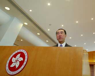 Secretary Henry Tang announces the latest unemployment figures in Hong