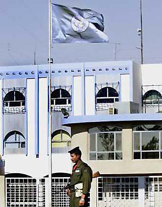 outside the United Nations headquarters in Baghdad in this September 30,