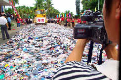 The special action, launched by the National Copyright Administration, is a move to support the development of the software and electronics industries. Through investigations of all kinds of software markets, copyright administrations hope to facilitate cracking down on firms that produce and sell pirated software. Enterprises that install pirated software on computers before sale will also be major targets of the special action, according to sources with the National Copyright Administration. The administration will also strengthen its surveillance of the very common practice of distributing illegal software over the Internet, according to the source, and service providers caught indulging in such practices will be dealt with according to the law. Piracy has become a major obstacle holding back the development of China's software industry in recent years. Though the country has shaped policies to encourage the industry's development, the burgeoning industry still needs a more effective copyright protection system, said a statement of the administration. Just yesterday morning, the Beijing municipal copyright administration confiscated 70,000 pirated software discs and 10,000 pirated DVDs and VCDs in an investigation of a three-storey electronic product market called Wanshiji. In the same morning, officials in Guangdong Province, in South China, confiscated 33,500 pirated software items in three large computer markets, while officials in Sichuan Province of Southwest China confiscated as many as 110,000 pirated software items. The National Copyright Administration said that similar actions will be taken against software piracy in the future. And from October 10 to 20, the administration will specially assign a supervision team to appraise the results of this special action. Over the past decade the government has pushed cracking down on piracy and protecting copyrights. Incomplete statistics show that from 1995 to 2002, the country's copyright administrations have destroyed 197 million pirated items.