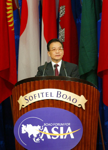 "To create a win-win situation through closer co-operation and stronger efforts for development is the only way to make Asia's renewal possible," said Premier Wen Jiabao yesterday at the Second Annual Conference of Boao Forum for Asia. In his key-note address, Wen encouraged all countries in the region to maintain peace and stability by cultivating "a new security concept" that features mutual trust, mutual benefit, equality and co-operation. Besides Wen, Pakistan President Pervez Musharraf and Singapore Prime Minister Goh Chok-tong delivered key-note speeches at the opening session of the forum. Besides highlighting regional integration, Wen emphasized that "Asia cannot rejuvenate in isolation from the world, while the world also needs Asia for prosperity and progress." To achieve development, the region should open itself to the finest achievements of all civilizations and draw upon the successful experiences of development made by others, Wen said. His views were echoed by Goh, who warned that "as Asia deepens regional integration, we must not turn inwards and keep others out." If the three regions - or the possible free-trade areas of the Americas, the European Union and an Asian economic community - turn inwards, and each pursues an isolationist strategy, everyone will be a loser, said Goh. Turning to China's relations with its regional neighbours in the region, Wen said that China's reforms, opening-up and further economic development will surely bring more opportunities for development and tangible benefits to others. "One has every reason to believe that a dynamic, strong and prosperous China, a China that is dedicated to world peace and development, and a China that never seeks hegemony for itself, will make fresh contributions to Asia's rejuvenation and renewal," said Wen. Goh said that as Asia emerges, there will be "many stresses and strains," while China will play a key role in the management of these strains. Economically, China can help shape Asia's new economic architecture, said Goh. "Indeed, China has welcomed other countries to share in its growth. By doing so, China will bring about a peaceful and prosperous Asia," Goh added. After hearing Wen's speech, Secretary General of the Association of Southeast Asian Nations (ASEAN) Ong Keng-yong told reporters that the Chinese premier's remarks again assured ASEAN countries that China-ASEAN relations will be "stable and predictable". Musharraf yesterday called for greater efforts to build an Asian consensus on regional development. He said it is an urgent task to enhance comprehensive and integrated development, reinforcing Asian values, abating tensions and seeking peaceful resolutions of political disputes. The forum is a non-official and non-profit international organization providing a platform for high-level talks on economic, social, environmental and other issues, according to a new constitution the organization passed on Saturday. Other officials and experts delivering speeches at the plenary session included: Fidel V. Ramos, chairman of the Forum's Board of Directors, President of Tajikistan Emomali Rakhmonov, South Korean Deputy Prime Minister Kim Jin-pyo, Hong Kong Chief Executive Tung Chee-hwa and World Economic Forum President Klaus Schwab. Concurrent sessions were held yesterday to explore issues like regional free-trade arrangements, Asian financial co-operation and IT industry, and the role and responsibility of the Asian media.