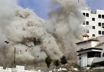 An Israeli army spokesman said special forces killed three Islamic militants who had opened fire at them. One of the militants perished in a five-story block demolished on top of him after he refused to come out and surrender, witnesses said. Palestinian medics said the boy died after being shot in the head by Israeli troops around midday in a Ramallah refugee camp. Military sources said soldiers had clashed with stone-throwers near the site and the shooting was under investigation. In house-by-house searches, soldiers arrested 30 members of the Islamist group Hamas wanted in connection with 10 bombings that had killed 68 people in Israel, security sources said. Troops also blew up three buildings used to make or hide explosives before withdrawing, an army spokesman said. The violence flared just before the roll-out in Switzerland of the alternative peace pact hatched by Israeli left-wing opposition figures and Palestinian politicians, raising pressure on those in power to stop fighting and start talking in earnest. In Cairo, the start of Egyptian-brokered talks with militant leaders on arranging a cease-fire were put off from Tuesday until later in the week for security and technical reasons. Militants served notice that a truce proclamation was unlikely unless Israel did the same. New moderate Palestinian Prime Minister Ahmed Qurie wants to present a militant commitment to a truce to Israel for its agreement. Israel said the Ramallah incursion aimed to forestall further attacks on Israelis, again accusing Arafat's Palestinian Authority of failing to rein in militants. Palestinian officials said such raids risked stalling the new flurry of peacemaking for they only provoked militants to hit back. Violence has diminished since October but Israel still cites frequent intelligence alerts of planned militant strikes. ENVOY'S VISIT YIELDS ISRAELI PLEDGE ON OUTPOSTS U.S. envoy William Burns was in the region trying to clear hurdles to resuming the "road map" process, urging the two sides to go ahead with a meeting between Qurie and Israeli counterpart Ariel Sharon held up by jockeying over preconditions. Israeli Defense Minister Shaul Mofaz told Burns in a meeting that six to 10 small West Bank settlement outposts would be dismantled, a government source told Reuters. The road map, which charts steps to a Palestinian state by 2005, stipulates that Israel remove more than 100 outposts -- caravan clusters on hilltops -- and stop expanding 145 established, suburban-style settlements in occupied territory. "We share the hope that there is a moment before us when we can begin to renew movement on the basis of the road map," Burns told reporters. "It is not going to be easy." U.N. Middle East envoy Terje Roed-Larsen said military action like Israel's thrust into Ramallah was unhelpful. "What both parties should do now is their utmost to create the confidence necessary to bring them back to the table," he said.