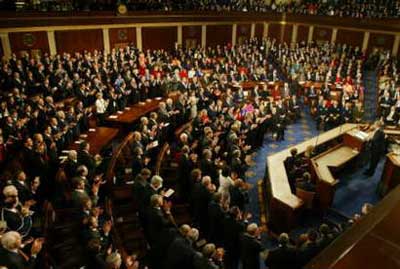 Bush cites progress, 'unfinished business' ( 2004-01-21 11:20) (Agencies) Ten months before facing voters, U.S. President Bush delivered an upbeat State of the Union address Tuesday night that defended his stewardship of the nation at home and abroad, as he called on Americans to stay the course. Addressing a joint session of the U.S. Congress in the House chamber, Bush cited progress in the war on terrorism and in turning the U.S. economy around. But much work remained, he said.