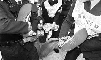 He reiterated that Beijing's interpretation of the Basic Law annexes would not undermine "One Country, Two Systems" and the "high degree of autonomy" in Hong Kong. In the early morning, police removed some 60 protesters from the complex after they camped there overnight to protest against the interpretation of the Basic Law by the National People's Congress Standing Committee (NPCSC). Most of the protesters were from the Federation of Student Unions. Tsang said he fully understood the concerns of young people over the possible impact of the interpretation move. But there were sufficient channels available for exchange of ideas. "We have been through a number of difficulties, such as the SARS outbreak and the Asian financial crisis, since the handover. Whenever we encountered a difficulty, the central government gave its helping hands to us timely and unselfishly," Tsang said. "I believe that the central government, like always, will deal with the interpretation in the interests of Hong Kong...The move will not undermine the 'One Country, Two Systems' principle and 'high degree of autonomy' in Hong Kong," he said. He called on young people to consider the issue in a calm and law-abiding way. Protesters held a rally at the main entrance to the government complex after a 3,000-strong candle-light vigil at Chater Garden, Central, that ended at 9:30 pm on Thursday. Scuffles broke out when the protesters sought to force their way through the police barricade and sit on the driveway. They said they wanted to hand a petition to Chief Executive Tung Chee-hwa when he arrived at the office the next morning. Protesters refused to leave even though the police had issued seven verbal warnings throughout the night. Many police officers then carried away the protesters in two separate actions at about 4:30 am and 6:30 am on Friday so as to let government employees go to work. Chaos and wrangles flared as protesters struggled to remain and many reporters jostled and vied to cover the news. During the operation, two demonstrators were arrested for assaulting police and later released on bail but they had to report to the police next Thursday. Five police officers were slightly injured and seven protesters felt unwell and were sent to hospital. The police said they exercised maximum restraint and minimum force when removing the protesters. They will launch an investigation into the whole incident. But some democrats and the Hong Kong Journalists Association condemned the police for resorting to force to remove demonstrators. Meanwhile in Beijing, the NPCSC began a five-day meeting on Friday to discuss the interpretation on the two annexes of the Basic Law concerning the methods for the selection of the chief executive and the formation of the Legislative Council after 2007. NPC member Tsang Tak-sing revealed to reporters after the meeting that he expected the interpretation would be lenient. The central government would not sideline the SAR government and block constitutional development in Hong Kong, he said. It is expected that the NPCSC would approve and announce the interpretation of the Basic Law on Tuesday. |