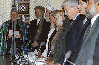Afghan cabinet, minus warlords, sworn in