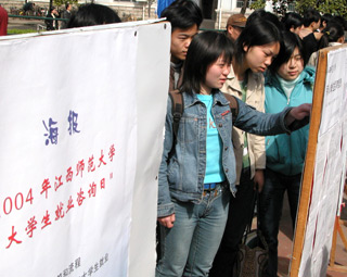 But rather than recommending a few hours under the knife, some of the experts told participants they need to find ways to let their inner beauty shine. The job market is exceedingly tight for new graduates, and many are looking for an edge that will help them stand out in an interview. For some, cosmetic surgery is seen as the fastest route to a better appearance. "June, July and August are the peak periods for senior students seeking plastic surgeries for better images in advance of their interviews," Peng Bo, president of Shanghai Time Plastic Surgery Hospital, said during the session at Shanghai Shanda University. The hospital performed about 300 surgeries on students during those three months last year, a 30 to 40 percent increase over the year before. About 85 percent of the patients were young women, and most wanted double eyelids, nose reconstruction or skin treatment. He said most students are reasonable about their expectations, but some place too much emphasis on appearance alone. "About 1 to 2 percent of the students asking for surgery have mental problems and consider cosmetic procedures a last straw to ensure a bright future. We always provide psychological direction for those patients," Peng said. Other experts on image design pointed out in the session that recruiters don't consider appearance to be the deciding factor. "Academic performance, inner qualities and communication skills are more important," said Xu Jiahua of the Shanghai Theater Academy. "Students can upgrade their images through proper dress and makeup. A clean and proper appearance is more impressive than just a pretty face."