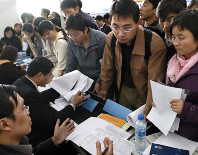 Jiangsu Province November 20, 2005. Some 100,000 graduates came to seek