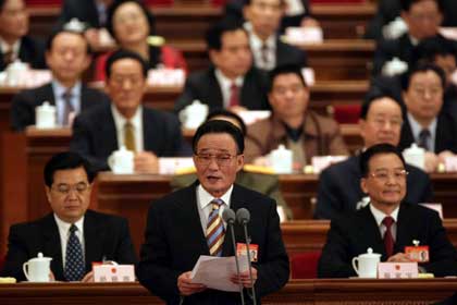 Wu Bangguo delivers speech at NPC session