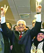 Mahmoud Abbas celebrates his win of campaign