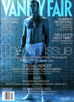Hollywood superstar Brad Pitt's representatives hit out at Vanity Fair magazine after it splashed semi-naked photos of the actor on the cover of its December issue. The photos of Pitt -- shown standing in nothing but a pair of boxer shorts and a pair of socks -- were taken by artistic photographer Robert Wilson in September 2005, TMZ celebrity website said. But while Pitt, 42, signed a legal release when the photograph was taken, he was oblivious they would end up on Vanity Fair's cover more than a year later. "We are very disappointed that Vanity Fair has chosen to put an unauthorized cover on their magazine," a spokesperson for Pitt said. "It seriously makes me question their integrity and motives." A statement from Vanity Fair said Pitt's managers had been notified on October 5 of the decision to use the photo for its special "art" issue. The magazine defended the decision, saying it had obtained the right to use all Wilson's photographs taken as he put together a study of video portraits. "Vanity Fair decided to do a story on Wilson's video portraits and obtained rights to the entire collection of photographs from those sittings, which included Pitt's," the statement quoted by TMZ said. Vanity Fair has a long track record of publishing notable cover photos, most famously a shot of a heavily pregnant Demi Moore posing naked and more recently world exclusive shots of Tom Cruise's baby daughter Suri.