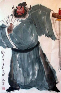 Zhong Kui is the exorcist par excellence. His picture, a fierce-looking male brandishing a magic sword, used to be hung up in Chinese houses in order to scare away evil spirits and demons, especially in the time of Dragon Boat Festival.