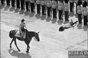 不知是出于激動(dòng)還是別的原因,1970年6月的一天,女王騎馬經(jīng)過(guò)儀仗隊(duì)時(shí),一名士兵突然倒下。