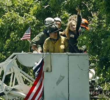 為了把抗議的人趕下樹,洛杉磯政府當局砍斷了核桃樹的樹枝,出動了消防車,將示威人員一個個拽到地上。漢娜在被趕下樹之前通過手機告訴美聯(lián)社記者:“我深信這在道義上是正確的,我要和這些農(nóng)民站在一起!