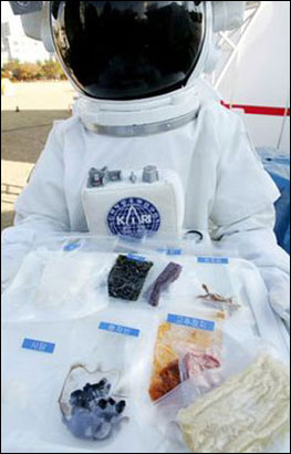 太空食譜的構(gòu)成主要是考慮到在失重的狀態(tài)下鈣無(wú)法吸收極易患上骨質(zhì)疏松癥等方面。太空食譜中,包括明太魚(yú)湯、海帶湯、方便面、洋蘑菇羹湯、豆乳、巧克力、壓縮餅干、餅干、肉脯等,還有泡菜。大部分為壓縮式食品,在宇宙空間站的條件來(lái)看,只能澆上燒到80度的開(kāi)水來(lái)吞食。每頓餐的成本為1萬(wàn)韓元左右。