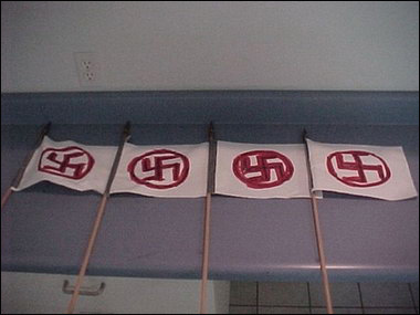 在美國國旗所在的位置上,出現(xiàn)了手繪的納粹十字旗。