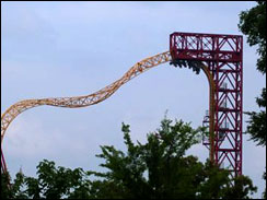 乘坐另外一輛過山車的游客索爾特說:“你能看出誰是從X型過山車上下來的,因?yàn)樗麄兊哪樁际羌t的。”