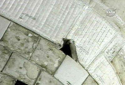 “亞特蘭蒂斯”號機械臂上的攝像頭所拍照片顯示,航天飛機機身隔熱瓦出現(xiàn)一條10至15厘米的裂痕。