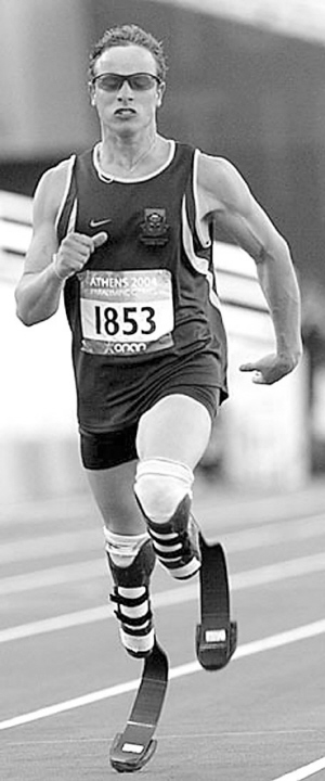 但奧斯卡顯然并不滿足現(xiàn)有成就。今年初,他正式申請參加2008年北京奧運會,他夢想成為第一個參加健全人奧運會的殘疾田徑選手!但這一申請卻引發(fā)了巨大爭議。許多人將他視為開創(chuàng)性的“英雄”,但也有人認為,他裝上高科技“刀鋒腿”賽跑等于“作弊”,因為他從中獲得了大量優(yōu)勢——“刀鋒腿”令他的跑步動作更協(xié)調(diào),而且?guī)椭~的步子更大!此外,一些專家還聲稱,由于沒有雙腿,奧斯卡的肌肉在奔跑中產(chǎn)生的乳酸比正常選手更少,從而使他不容易感到疲勞。