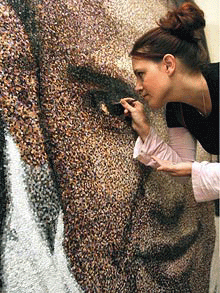 這幅巨作的尺寸為8英尺(約2.4米)×5英尺(1.5米),一共由25萬張小紙片粘合而成。它的作者、現(xiàn)年34歲的杜斯韋特女士整整花了12周的時(shí)間才將每一張紙片粘到了巨大的肖像上面,并恰好在漢密爾頓奪得巴西國際汽車大獎(jiǎng)賽冠軍的前幾天大功告成。從一定的距離以外看,這幅作品似乎與傳統(tǒng)油畫沒什么兩樣,只有當(dāng)你走近時(shí),才會發(fā)現(xiàn)它是由打孔機(jī)出來的圓紙片做成的。