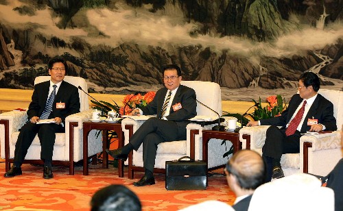 3月8日,中共中央政治局常委、國(guó)務(wù)院總理溫家寶參加十屆全國(guó)人大四次會(huì)議新疆代表團(tuán)審議,聽(tīng)取代表們的意見(jiàn)。
