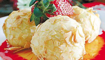 將新鮮士多啤梨先制成糯米,包裹士多啤梨雪糕后再炸,先有糯米的松化,再來(lái)就是雪糕幼滑的口感,一熱一凍,口感相當(dāng)刺激。