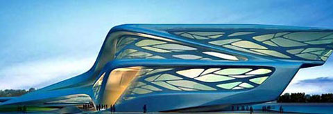 世界著名設(shè)計(jì)師扎哈·哈迪德設(shè)計(jì)的表演藝術(shù)中心像一個(gè)科幻世界里的變形蟲,這個(gè)建筑的外面裝飾了網(wǎng)狀的玻璃窗結(jié)構(gòu)。