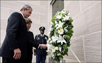 President and Mrs. Bush paid their respects on Sunday, placing a wreath