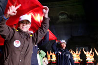 Happy university volunteers get involved in the rally on the New Year Eve. Five "Smile Wristlets" for volunteers of the Beijing Olympic Games were officially unveiled at Drum and Bell Towers on the early morning of January 1, 2007.