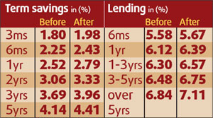 The rise, announced on Saturday, led to 27-basis-point increase in both