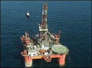 The platform is a semi-submersible that floats on two pontoons with legs supporting the main deck. It houses workers while they carry out jobs on the oil rigs.