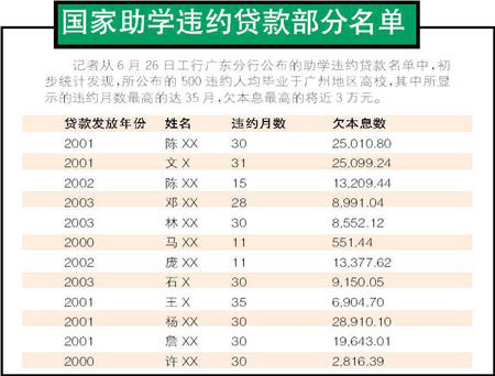 近日,中國工商銀行廣東分行和北京分行在中國高等教育學生信息網(wǎng)上分別公布了欠款逾期一年的500名和1200名學生名單,這是我國首次以公告的方式催還助學貸款,引起社會強烈反響。日前,工行廣州支行給記者發(fā)來的回復中稱公布名單是有據(jù)可依的。
