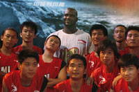 Shaquille O'Neal of the NBA's Miami Heat poses with young Chinese basketball players during a media event in Beijing August 14, 2007. O'Neal is on a promotional tour around China by the invitation of Li Ning, China's leading sportswear manufacturer.[Reuters]