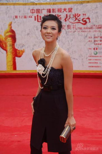 Chinese actress Zhang Ziyi (L3) walks on the red carpet at the 12th Huabiao Film Awards ceremony in Beijing on Sunday, August 26, 2007. The awards are regarded as the top prize in China's film industry. (sina.com)