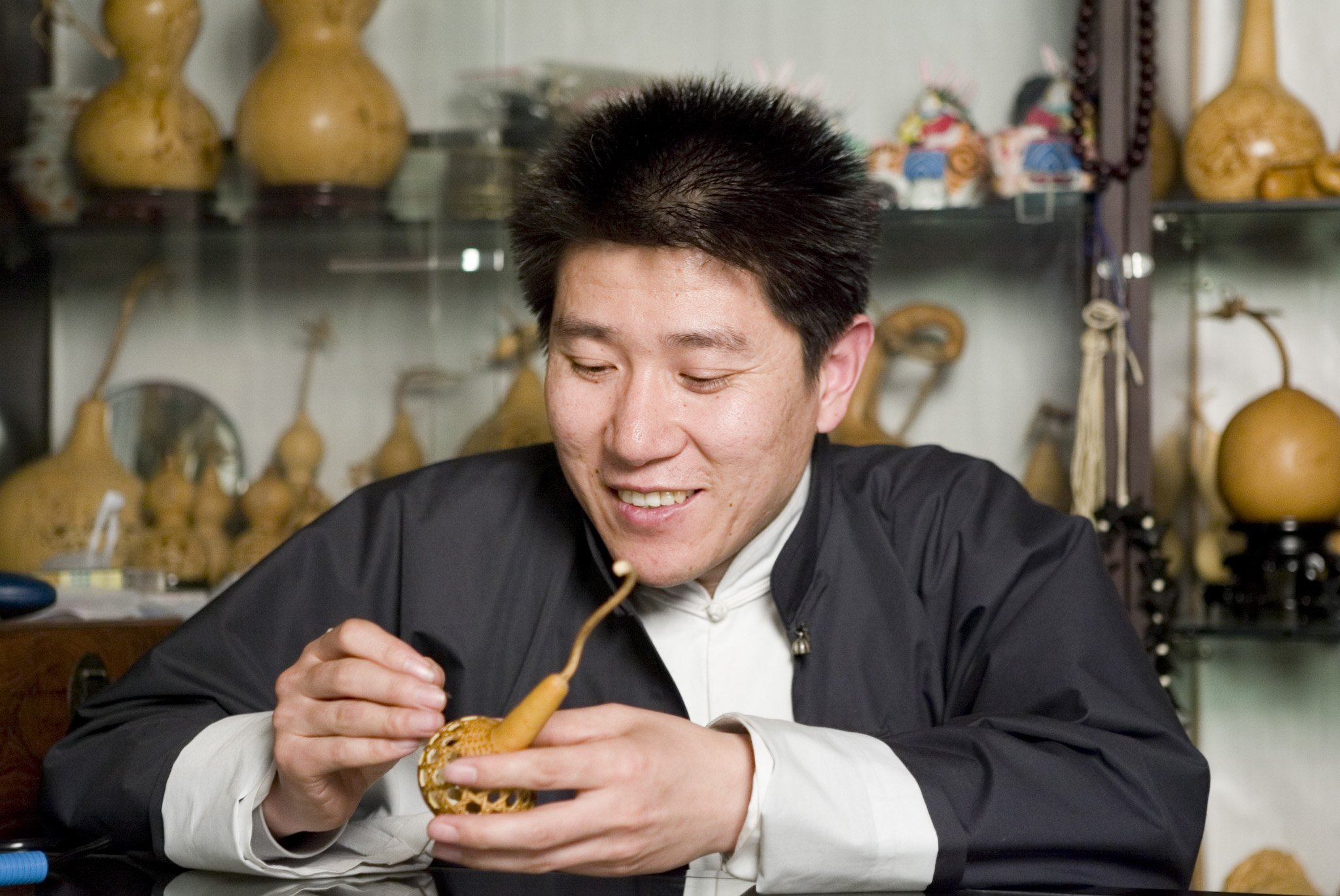Making a living doing exactly what you enjoy doing is a blessing. There’s one lucky man called Bai Zehua who owns a shop selling handicraft made from gourds.