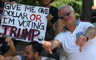 Look at that guy over there! He's wearing a tuxedo in this old pub. He's dressed like a dog's dinner!