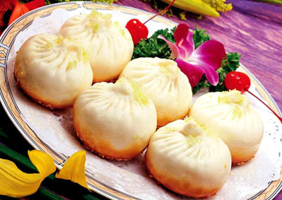 南翔小籠饅頭又叫南翔小籠包,是上海郊區(qū)南翔鎮(zhèn)的傳統(tǒng)名小吃,已有100多年歷史。該品素以皮薄、餡多、鹵重、味鮮而聞名,是深受國內(nèi)外顧客歡迎的風(fēng)味小吃之一。南翔小籠饅頭的餡心是用夾心腿肉作成肉醬,不加蔥蒜,僅撒少許姜末和肉皮凍、鹽、醬油、糖和水調(diào)制而成。饅頭的皮是用不發(fā)酵的精面粉作成的,50克面粉可包8個,100克一籠屜。蒸熟后的小籠饅頭,小巧玲瓏,形似寶塔,呈半透明壯,晶瑩透黃,一咬一包湯,滿口生津,滋味鮮美。如果吃時(shí)佐以姜絲、香醋、配上一碗蛋絲湯,其味更佳。南翔小籠饅頭的餡心還可以隨季節(jié)變化而變化。初夏加蝦仁,秋季加蟹肉、蟹黃、蟹油。豫園商場內(nèi)的南翔饅頭,是豫園商場有名的風(fēng)味小吃之一。