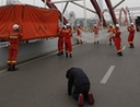 A 23-year-old man, surnamed Wei, tried to commit suicide from the top of a bridge as his mother cried and knelt down to implore him not to jump.