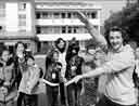 英國哈里王子在美國空軍學(xué)院訪問時童心大發(fā),貴為王子的他跪在地上大玩疊羅漢。