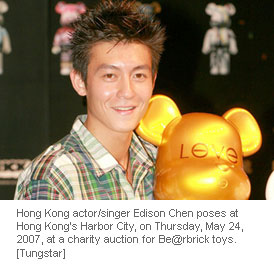 A charity auction for ten hand-painted Be@rbrick toys invited local star Edison Chen to inaugurate the event at Hong Kong's Harbor City on Thursday.