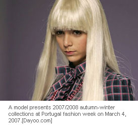 A model for Italian fashion designer Valentino presents one of his creations during his Autumn/Winter 2007/08 ready-to-wear fashion collection in Paris February 28, 2007. [Reuters]