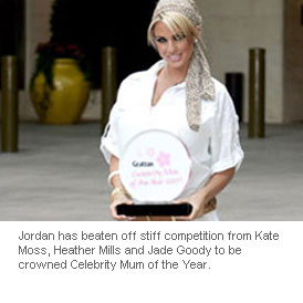 Jordan has beaten off stiff competition from Kate Moss, Heather Mills and Jade Goody to be crowned Celebrity Mum of the Year.