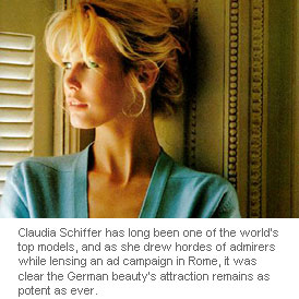 Claudia Schiffer has long been one of the world's top models, and as she drew hordes of admirers while lensing an ad campaign in Rome, it was clear the German beauty's attraction remains as potent as ever.