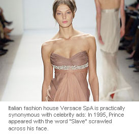 Italian fashion house Versace SpA is practically synonymous with celebrity ads: In 1995, Prince appeared with the word "Slave" scrawled across his face. Last year, Demi Moore lounged in a cleavage-baring halter dress; Madonna perched on a glass desk in a tight taupe shirtdress.
